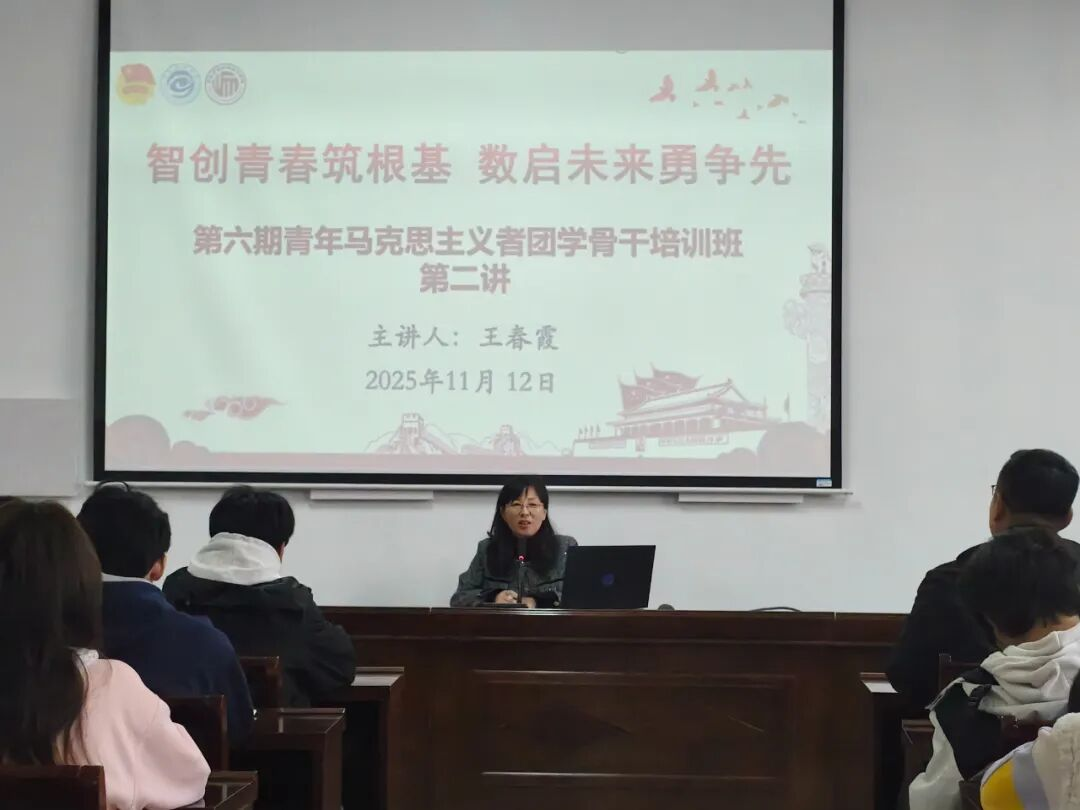 11月12日,信息技术学院第六期青年马克思主义者团学骨干培训班第二讲在梁园校区三商楼112会议室顺利进行,信息技术学院院长王春霞以“智创青春筑根基,数启未来勇争先”为主题授课,全体学员积极参与,共同探讨数字时代青年成长路径与使命担当。