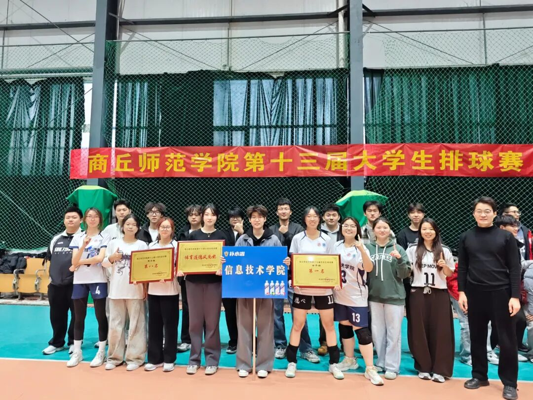 商丘师范学院第十三届大学生排球赛于 11 月 12 日至 20 日在梁园校区排球场热血开赛。信息技术学院男排、女排队员并肩出征,奋勇角逐,最终女排力压群雄摘得桂冠,男排亦凭借顽强斗志斩获第八名,两支队伍用热血与实力共同绽放信院学子的青春锋芒。