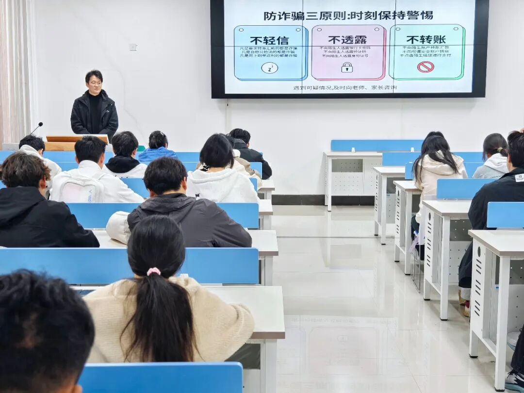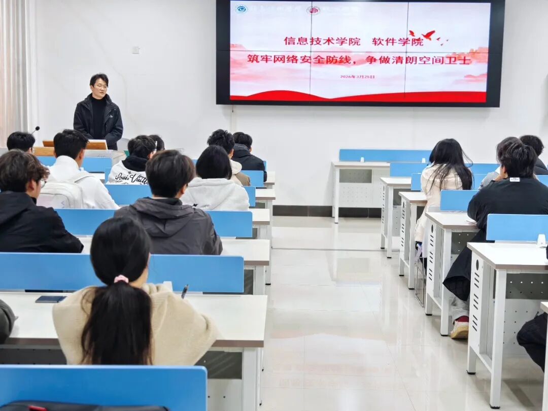 为提升学生网络安全素养与防电信诈骗能力,3月25日,信息技术学院以“安全文明卫生月”为契机,在三商楼101教室开展“筑牢网络安全防线,争做清朗空间卫士”主题教育活动。活动由辅导员老师陈洋洋和学院全体班级安全员共同参与。