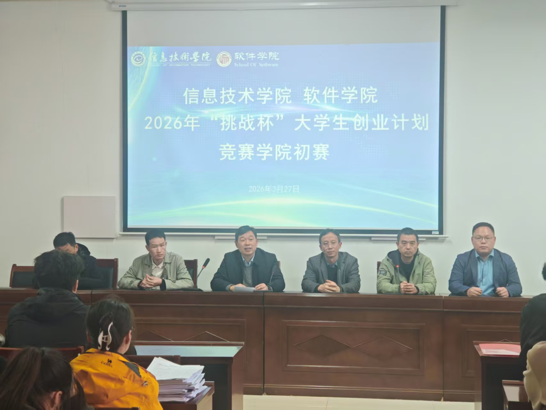 3月27日,信息技术学院在梁园校区三商楼成功举办2026年"挑战杯"大学生创业计划竞赛学院初赛。学院各教研室教师代表、各年级专业学生代表及各参赛团队答辩人共同参与本次赛事,比赛由学院副院长刘佳主持。